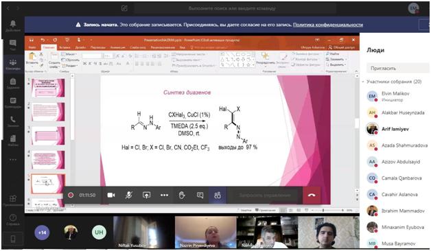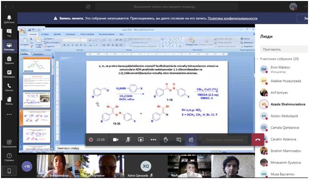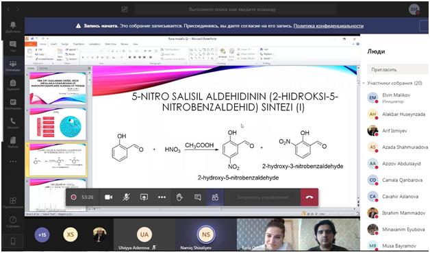 Üzvi kimya kafedrasının virtual iclasında magistrantların dissertasiya işlərinin ilkin müzakirəsi həyata keçirilib