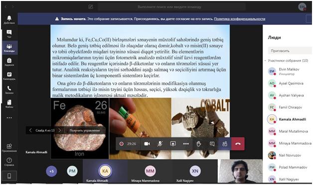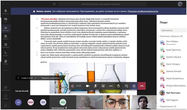 Analitik kimya kafedrasının virtual iclasında magistrantların dissertasiya işlərinin ilkin müzakirəsi həyata keçirilib