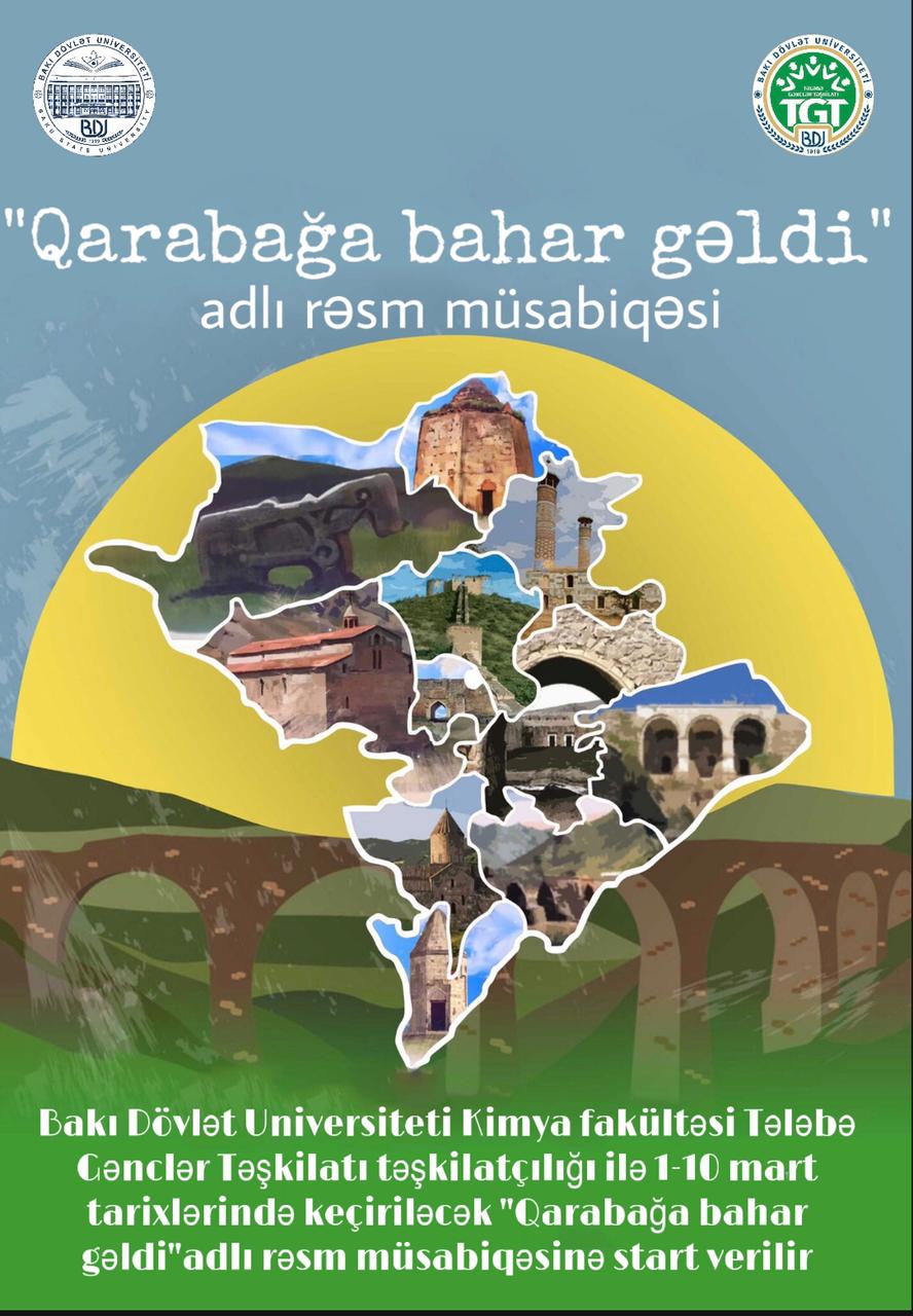 Bakı Dövlət Universiteti Kimya fakültəsi Tələbə Gənclər Təşkilatının təşkilatçılığı ilə keçirilən "Qarabağa bahar gəldi" adlı rəsm müsabiqəsinə start verilir.