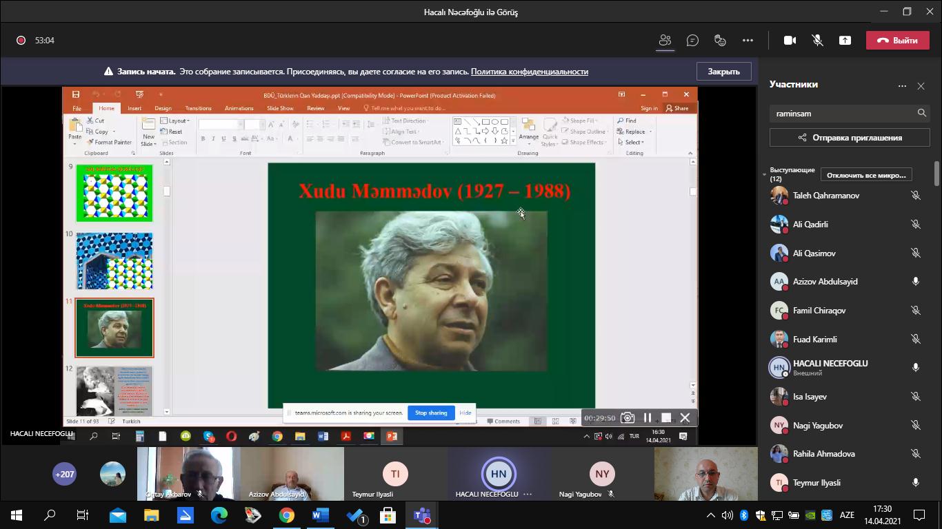 Kimya fakültəsində Qars Qafqaz Universitetinin professoru Hacalı Nəcəfoğlu ilə onlayn görüş keçirilmişdir.