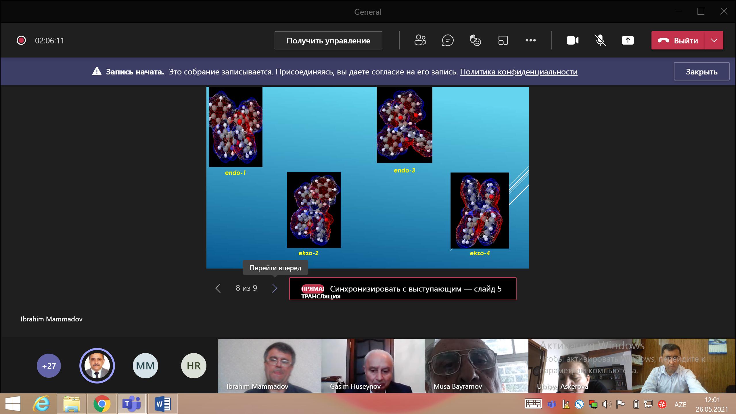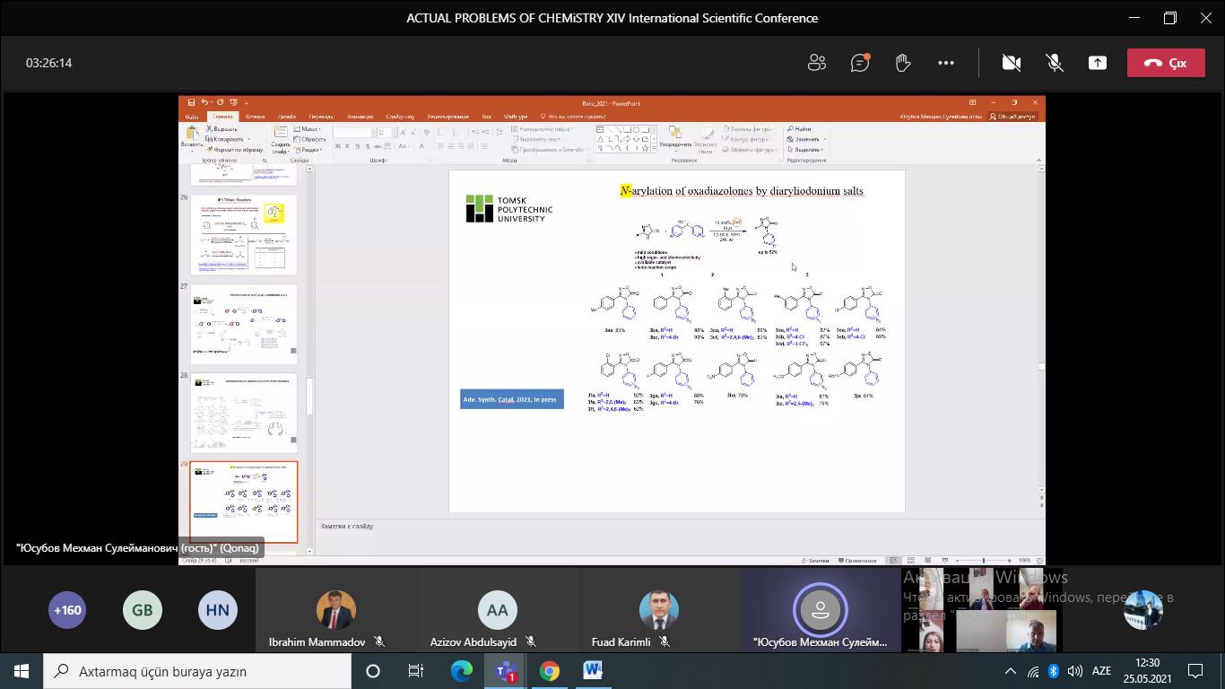 Dosent Kamran Mahmudov (Bakı Dövlət Universiteti, Azərbaycan; Lissabon Universiteti, Portuqaliya) “Peroxides in metal complex catalysis”.