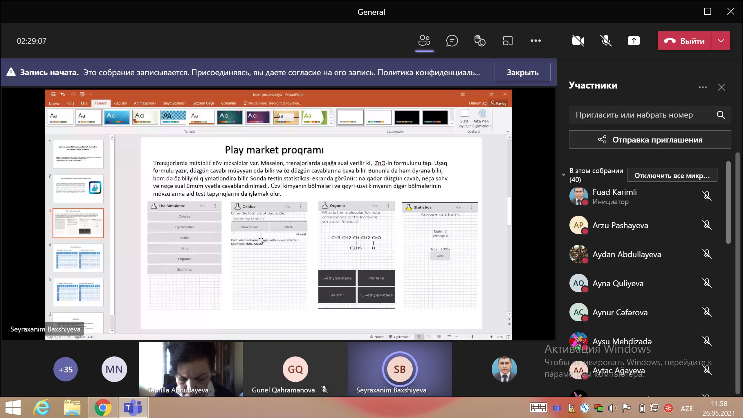Kimya fakültəsinin dekanı Abdulsəyid Əzizov çıxış edərək fakültənin tədris və elmi fəaliyyəti, ötən il əldə olunan nailiyyətlər haqqında konfrans iştirakçılarını məlumatlandırmış və hazırki şəraitin fakültənin fəaliyyətinə təsiri, pandemiya dövründə əldə edilən nailiyyətlər haqqında söz açmışdır.