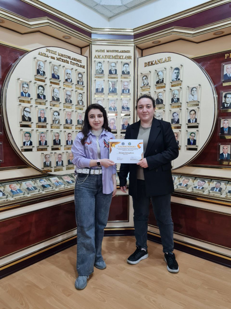 Bakı Dövlət Universiteti Kimya fakültəsi könüllülərinin təşəbbüsü ilə keçirilən "Biz də hamı kimiyik" adlı tədbirin təşkilatçıları və fəal iştirakçıları fakültənin dekan müavini Taleh Qəhrəmanov və BDU Könüllülərinin sədri Nərmin Heydərova tərəfindən təltif olunublar.