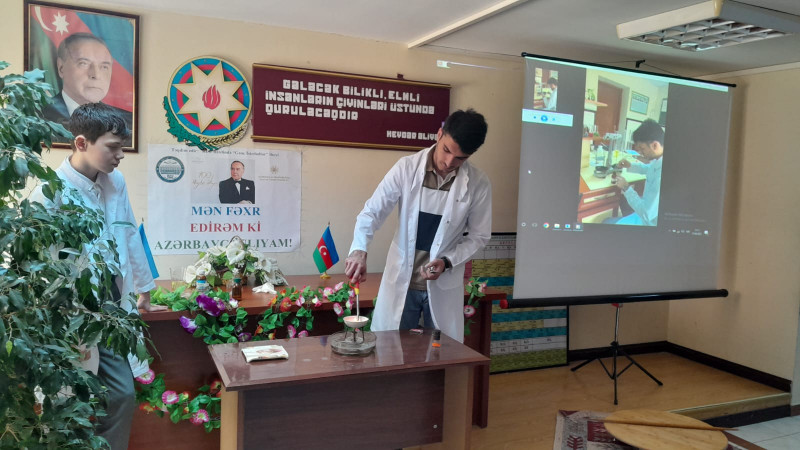 Bakı Dövlət Universiteti Kimya fakultəsi “Kimyanın tədrisi metodikası kafedrası”nın təşkilatçılığı ilə “Gənc İstedadlar” liseyində dahi şəxsiyyət Heydər Əliyevin anadan olmasının 100 illik yubileyi münasibətilə “Kimya gecəsi” adlı tədbir keçirilmişdir.